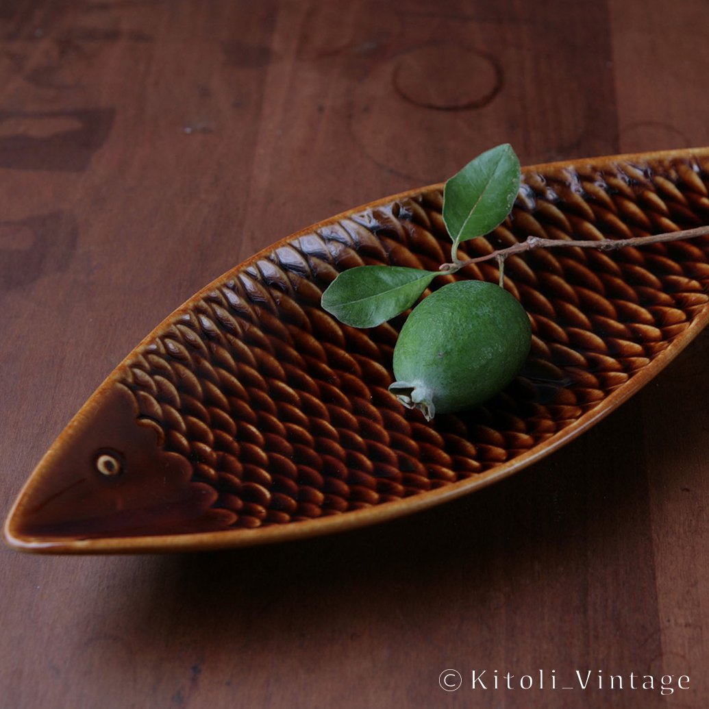 日本でも非常に人気がある魚型のプレートです。魚のちょっととぼけた表情とはうらはらに鱗がしっかりと描かれ、ベルサと同様に生命の力強さをポップさの中に描いた作品です。