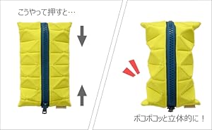プロディカルが販売している、まるで折り紙のように立体的に形が変化する斬新な発想のペンケースです。日本有数のニットの産地、五泉市で製造され、素材はもちろんニットです。編み目が細かく、普通にシャーペンでひっかいただけではほつれません。構造上ファスナーが大きく開き、容量も十分あります。形が変化するので、少し無理な入れ方をしてもなんとかなってしまうのが魅力です。