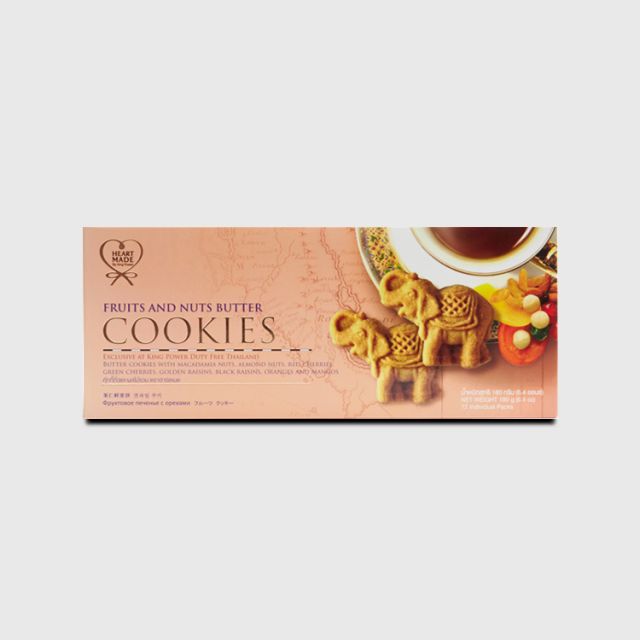 タイを象徴する動物といえば、信仰とも深く関わりのある象。ナッツとドライフルーツと、香ばしいバターの味わい深いクッキーを愛らしい象の形で提供しています。1箱280THB(タイ・バーツ)。