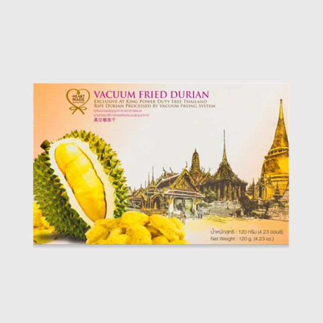 フルーツの王様「ドリアン」を、特殊な方法で揚げて美味しさや甘味を残したスナック。油はわずか2パーセントしか果肉に吸収されていないので、フライといっても脂っこさはなくヘルシーです。520THB(タイバーツ)。