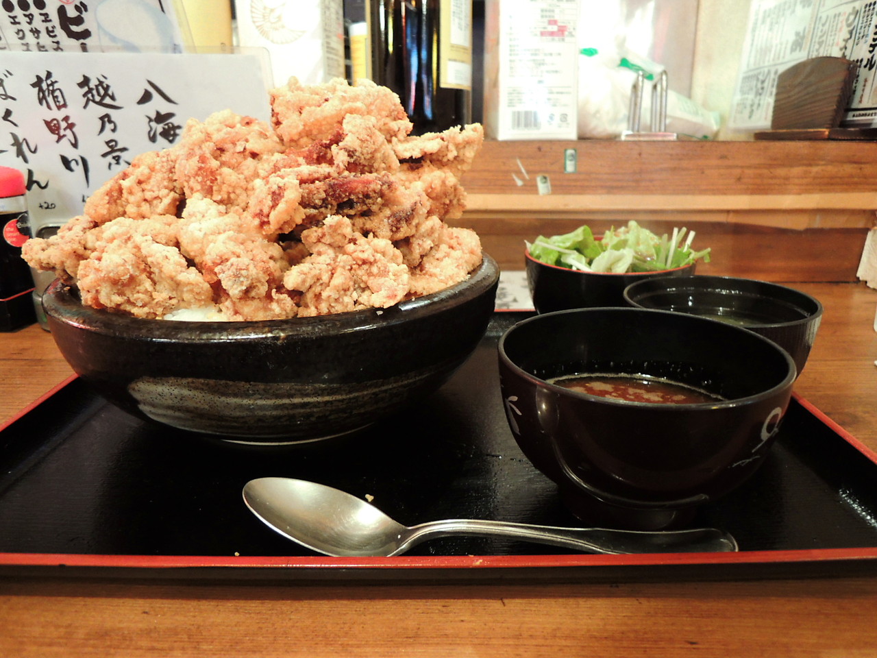 こちらの名物はボリューム満点の丼物です。海鮮丼や豚みそ丼も絶品ですが、なんといってもオススメは唐揚げ丼です。かりかりの唐揚げが山盛りに盛られたボリューム満点の唐揚げ丼はメディアにもたびたび取り上げられています。このボリュームで700円というのは驚きです。