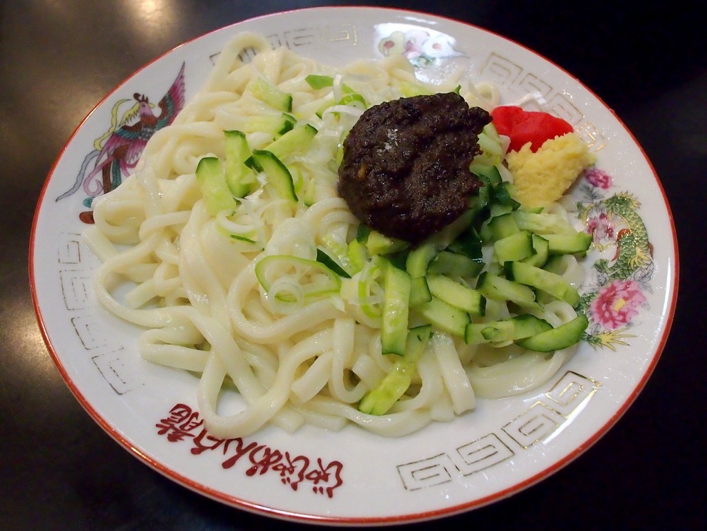 上盛岡駅から徒歩15分ほどのところにあります。「盛岡じゃじゃ麺」発祥のお店として知られています。創業者が戦後に満州で食べた「炸醤麺」を参考に屋台で提供したものがベースとなっています。じゃじゃ麺(中)は450円です。アツアツの麺の上にたっぷりの肉味噌ときゅうりがのっています。+50円で食べた後に玉子スープにする「鶏蛋湯(チータンタン)」も頂けます。