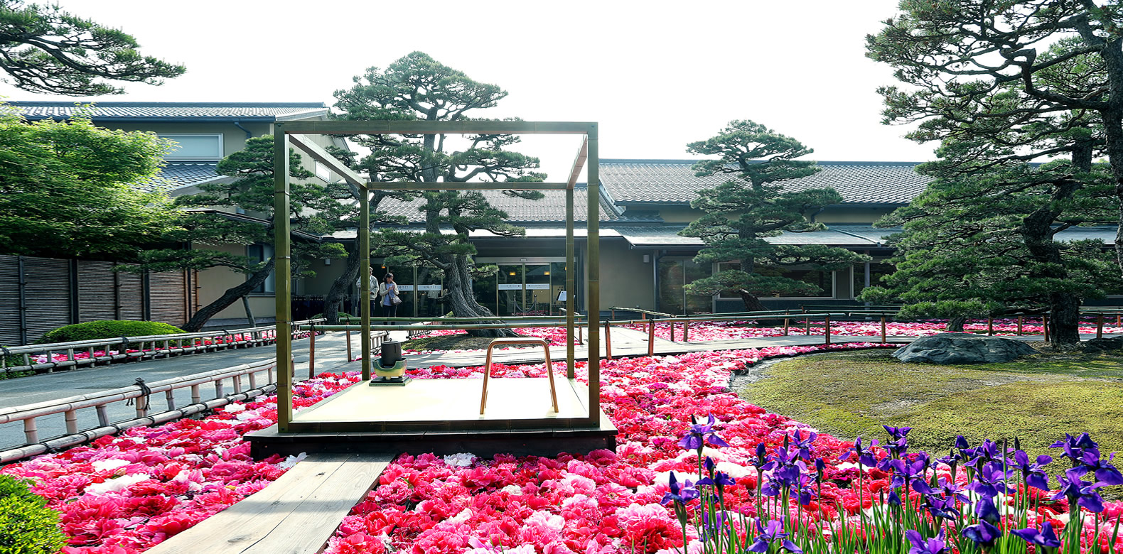 飯梨川の手前で左折して県道45号を進むと目的地の「足立美術館」に到着します。「足立美術館」は実業家・足立全康が収集した横山大観のコレクションを中心に、川合玉堂や平山郁夫の絵画や北大路魯山人の彫刻作品なども展示する美術館。広大な日本庭園を擁しており枯山水庭や青松白砂庭などを配置、自然が織り成す美も鑑賞できます。