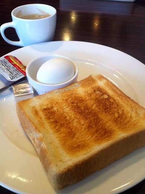ドリンクの値段に、トースト2枚(マーガリン、シナモンシュガー)とゆで卵がセットになります。トーストは1枚を半分にして一つにマーガリン、もう一つにシナモンシュガーが塗られています。シンプルですが、このシンプルさが毎日でも食べられる飽きのこない味わいなんですよね。素朴な見た目もまた魅力的で、コーヒーも美味しいので、ほっと一息つける朝の時間になりそうです。