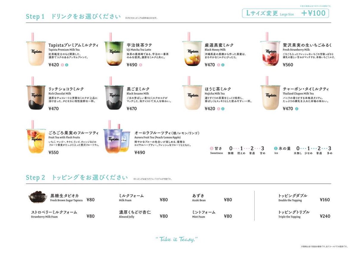 甘さの段階も選べて、トッピングの種類も豊富で量も選べる。