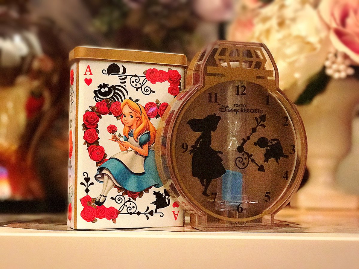 アリスを描かれた缶のデザインがかわいい紅茶。側面に真っ赤に塗られたバラがデザインされたトランプモチーフの缶にアリスが描かれます。ティーパックが6個入っていて、なくなっても紅茶入れとして使えます。懐中時計型のティータイマー付いていて特別感たっぷりです。