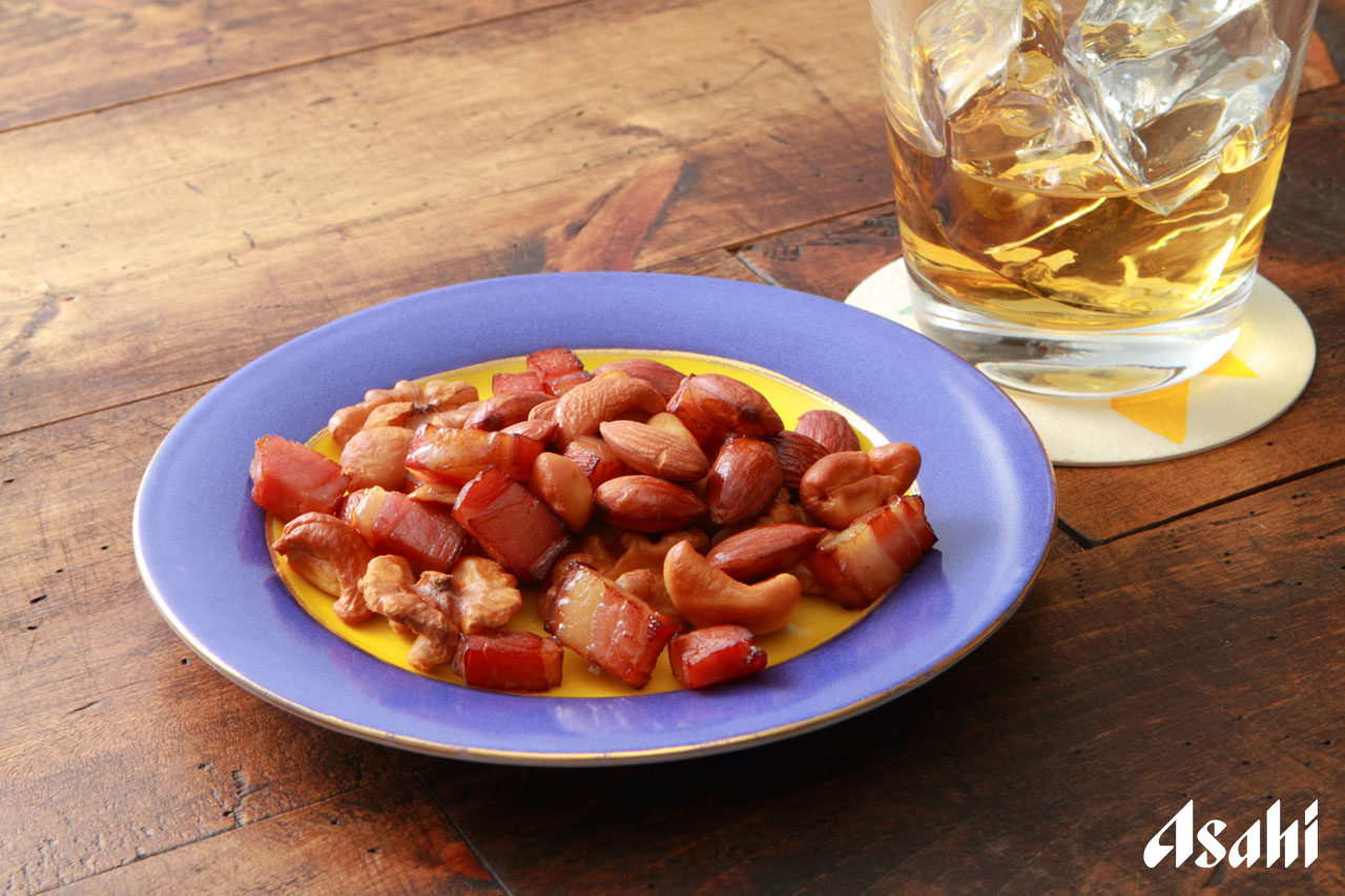 ウィスキーの香りを評する際に”ローストしたナッツのような~”と使われることもあるナッツ類。ウィスキーを飲みながらカリッとした食感と香ばしさを愉しむことができる肴で、数種類を混ぜたミックスナッツが好適、ストレートやオン・ザ・ロックとの相性がよいおつまみです。