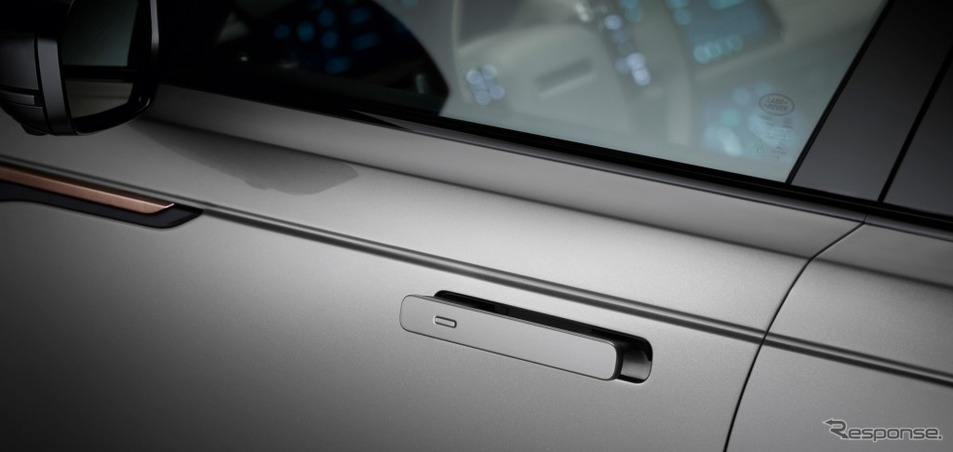 レンジローバーに共通するフローティングルーフをはじめ、各部にアイコンが散りばめられているデザイン。今までにないソリッド感のあるフロントから始まり革新的なデザインのデプロイヤブルドアハンドル。リヤエンドまで滑らかなフラッシュサーフェスの面構成が斬新です。