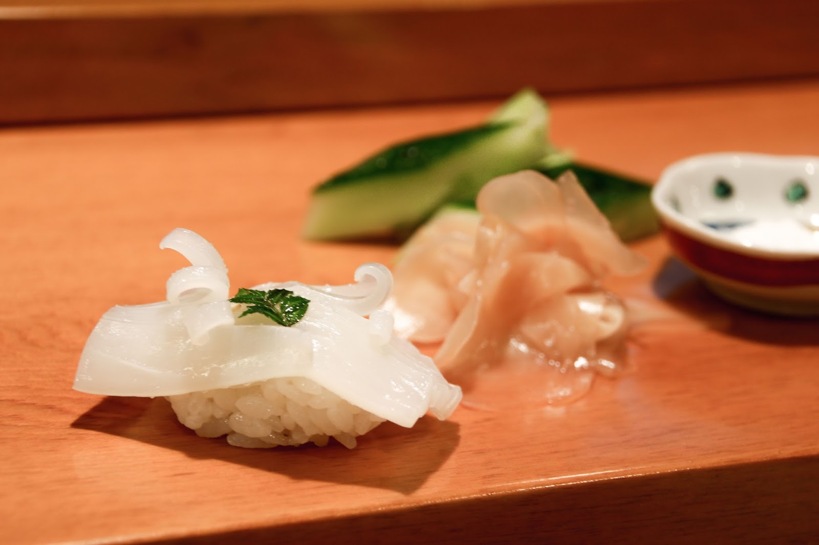 天寿しの名物は、赤烏賊の握り。